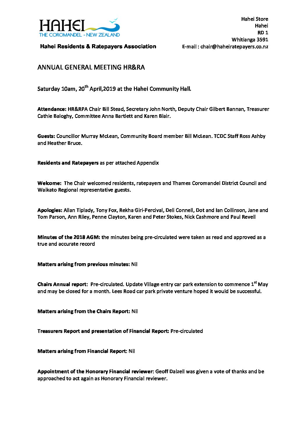 Your Association made a presentation to support our Long Term Plan 2019-2029 submission to TCDC Councillors on 1 May in Whitianga.